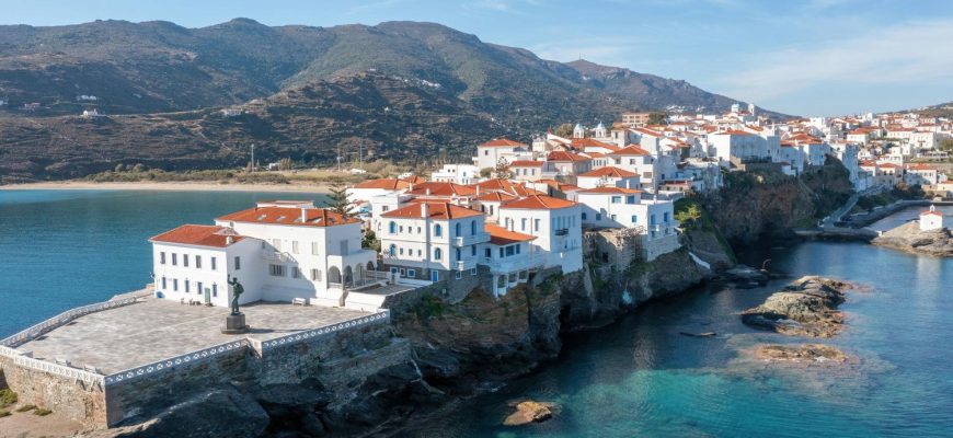 Остров Андрос является самым северным и вторым по величине островом Киклад, а также многие называют его одним из самых красивых островов в архипелаге. Андрос встречает своих посетителей горными цепями, зелёными долинами, виноградниками, оливковыми, фиговыми, апельсиновыми и лимонными рощами. Скалистые мысы и обрывы острова приятно контрастируют с долинами и песчаными пляжами, а белоснежные стены домов – с ярко-красными черепичными крышами и синими окнами. Главный и самый красивый город острова называется – Андрос (или Хора). Здесь вы сможете прогуляться по центральным площадям, которые усеяны цветами, узким улочкам с домами в неоклассическом стиле, а также посетить местные достопримечательности. Одними из них являются развалины крепости с церковью Богородицы (Панагия Палатьяни). Также можете заглянуть в Археологический музей, где представлены памятники, относящиеся к различным историческим эпохам Греции. Кроме того, Музей современного искусства удивит вас своими уникальными коллекциями живописи, скульптуры и других экспозиций известных греческих и иностранных мастеров, а Морской музей – богатой коллекцией моделей судов, фотоматериалов, а также предметов корабельной оснастки. Будучи на острове Андрос, посетите деревню Апикья – помимо множества озер и водопадов здесь расположены знаменитые минеральные источники Сариза и Пифара. Из наиболее популярных пляжей острова рекомендуем побережья Парапорти, бухту Корти, пляжи близ поселков Баци, Гаврио, Витали и др.Также обязательно посетите деревню Менитес, богатую ручьями, садами и деревьями. В деревне Корфи вы найдете богатые аристократические особняки, а в Стениес — капитанские дома. Что же касается туризма, то он в основном сосредоточен в деревне Баци – уютной рыбацкой деревушке на берегу одноименной бухты. Здесь вы сможете вкусно пообедать в одной из рыбных таверн или ресторанчиках на побережье, а также насладиться прогулками по деревне с прекрасным пейзажем. А пока вы наслаждаетесь прекрасным отдыхом на Андросе, не упустите возможность попробовать традиционные островные лакомства. Среди них — слоёные пирожки с сыром и зеленью «кальцуньи» (кαλτσούνια), воздушное миндальное печенье «амигдалота» (αμυγδαλωτά) и варенье «глико ту куталью» (γλυκό του κουταλιού). На острове прекрасно развита туристическая инфраструктура – к вашим услугам рестораны, кафе, множество сувенирных магазинов и хорошо обустроенных пляжей. Насладитесь чарующими ароматами островной флоры, побалуйте себя теплым солнцем и прозрачным морем, посетите местные монастыри и церквушки – отдых на острове Андрос обязательно принесёт вам массу приятных воспоминаний!