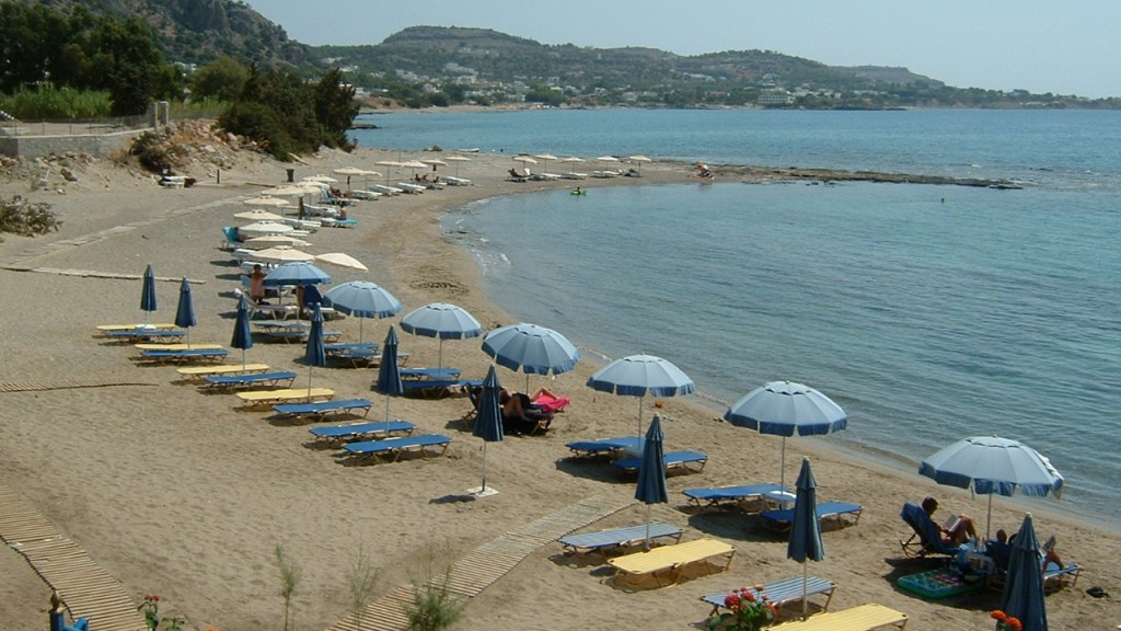 Агафи — один из самых красивый островных пляжей, расположенный в 38 км от столицы Родоса. Прекрасно организованный и зачастую многолюдный.
