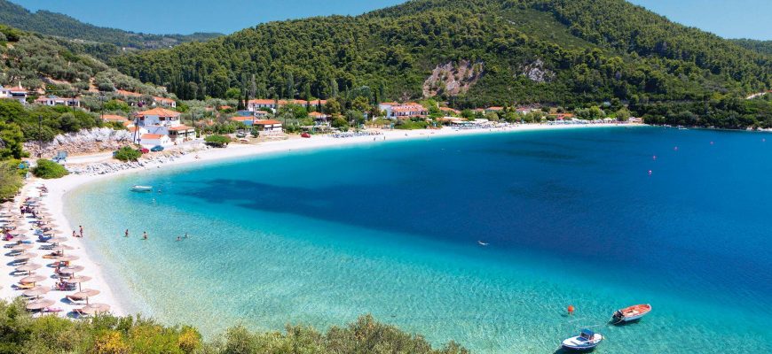 Пляжи Скиатоса считаются одними из самых красивых в Греции благодаря не только идеально чистому морю, но и обустроенным набережным, красивому пейзажу и